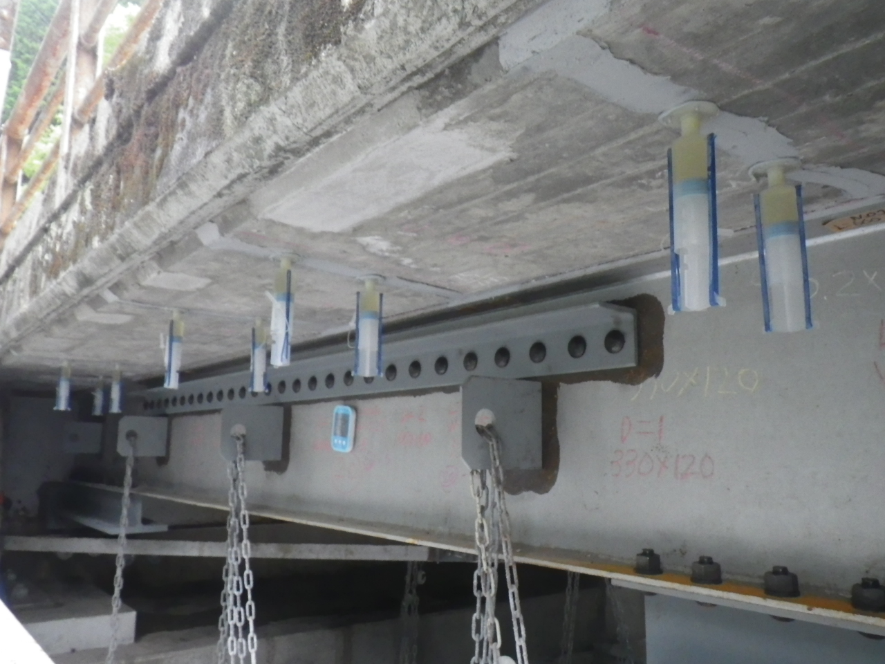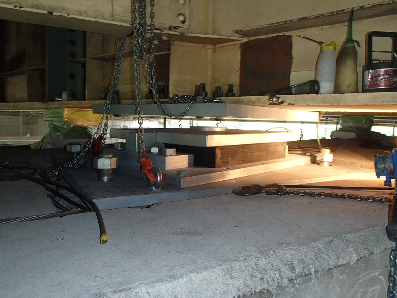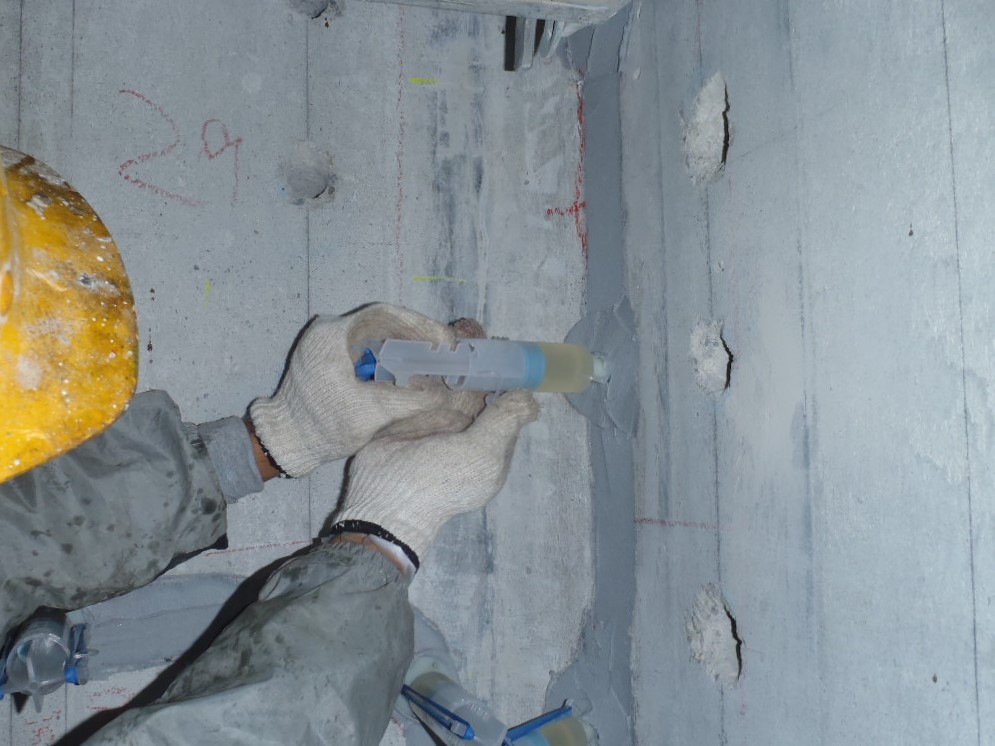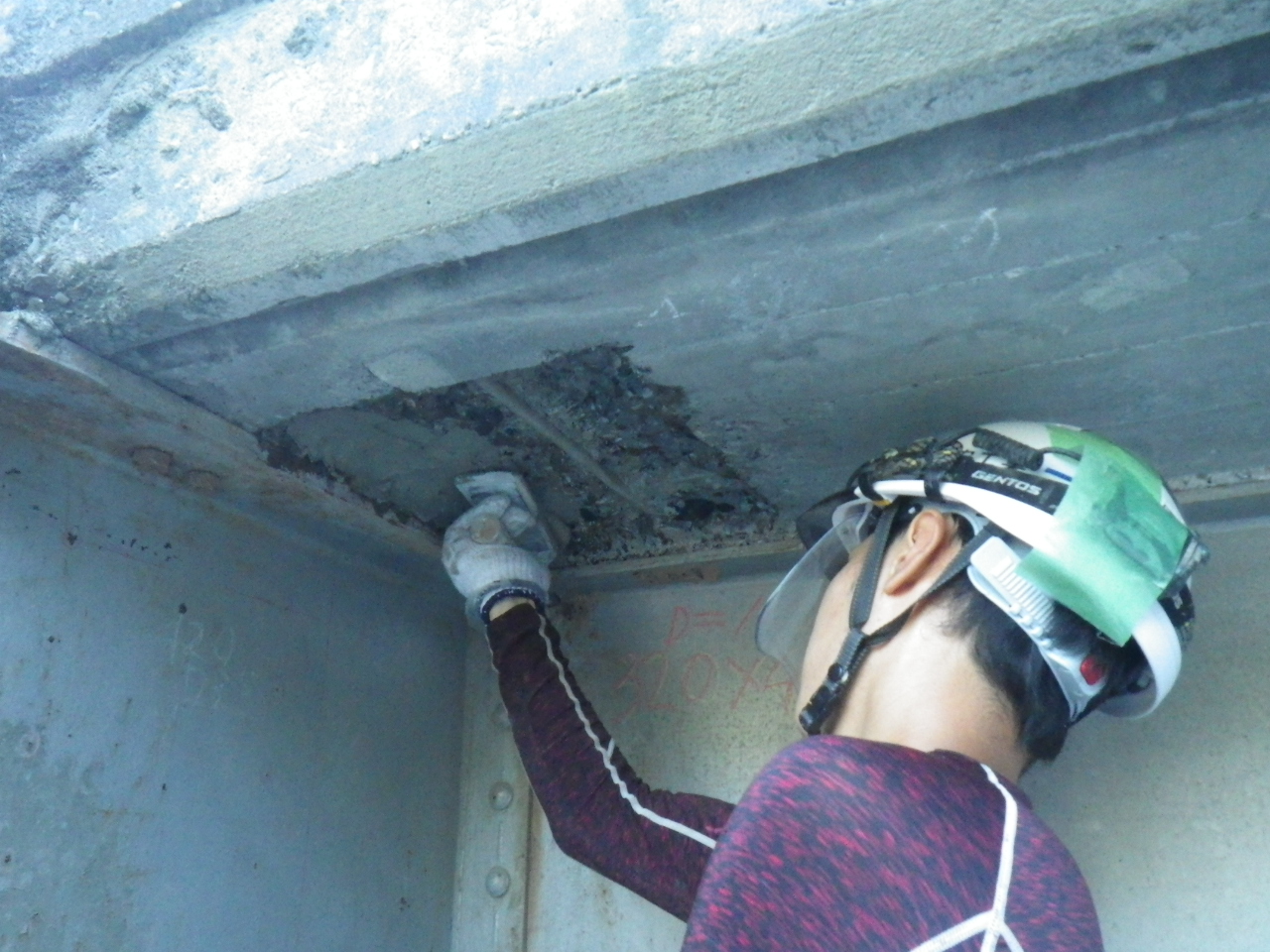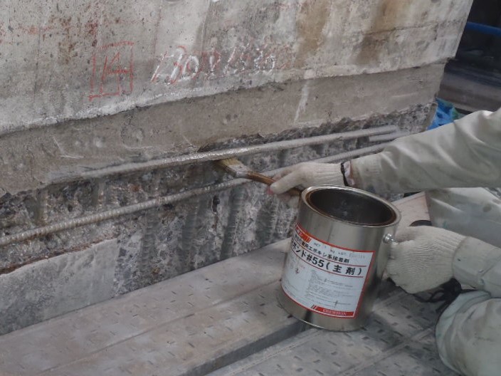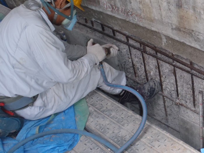 技術内容 橋体補強工 _ 当て板補強 鋼部材が腐食等により減厚したり断面欠損を生じた個所を取り囲むように当て板をあて、補強を行う ▲上部へ戻る 各種繊維シート接着による補強工 炭素繊維・アラミド・剥落防止シートなど各種繊維シートを用いた耐震補強・接触・近接爆発に対する補強・欠落落下防止などを行う ▲上部へ戻る コンクリート構造物補強工 _ ひび割れ注入補修工 コンクリート構造物のひび割れ幅や補修目的に応じ、ひび割れ部に合った材料・工法を選定し注入する。 ▲上部へ戻る 橋体補強工 _ 構造変更による補強工 状況に応じた鋼部材の応力の低減を計る為、補強部材の取付を行う。 ▲上部へ戻る 橋体補強工 _ 鋼鈑接着による補強工 構造物の曲げ・せん断耐力、変形性能を向上させる為、既設構造物に鋼板をあてがい、隙間にモルタル及びエポキシ樹脂を注入する。 ▲上部へ戻る 橋体補強工 _ 支承取替工 経年劣化・機能回復や耐震性能の向上を目的として、既設の支承を取り替える工法 ▲上部へ戻る 橋体補強工 _ 拡幅工 地震の際に橋桁がずれたり、落下しないように各装置を設置。震災時、桁が橋脚や橋台上で進行方向に移動し落下することを防ぐため、桁掛かり 部分を進行方向に増し打ちし拡幅する。 ▲上部へ戻る コンクリート構造物補強工 _ コンクリート脆弱部断面修復工 コンクリート構造物の劣化状況を調査し、劣化部分を斫り撤去し劣化状況に応じた断面修復材にて断面修復を復元する。 ▲上部へ戻る 断面修復工 ▲上部へ戻る 橋体補強工 _ リベット取替工 ▲上部へ戻る 補強用ケーブル設置工 ▲上部へ戻る