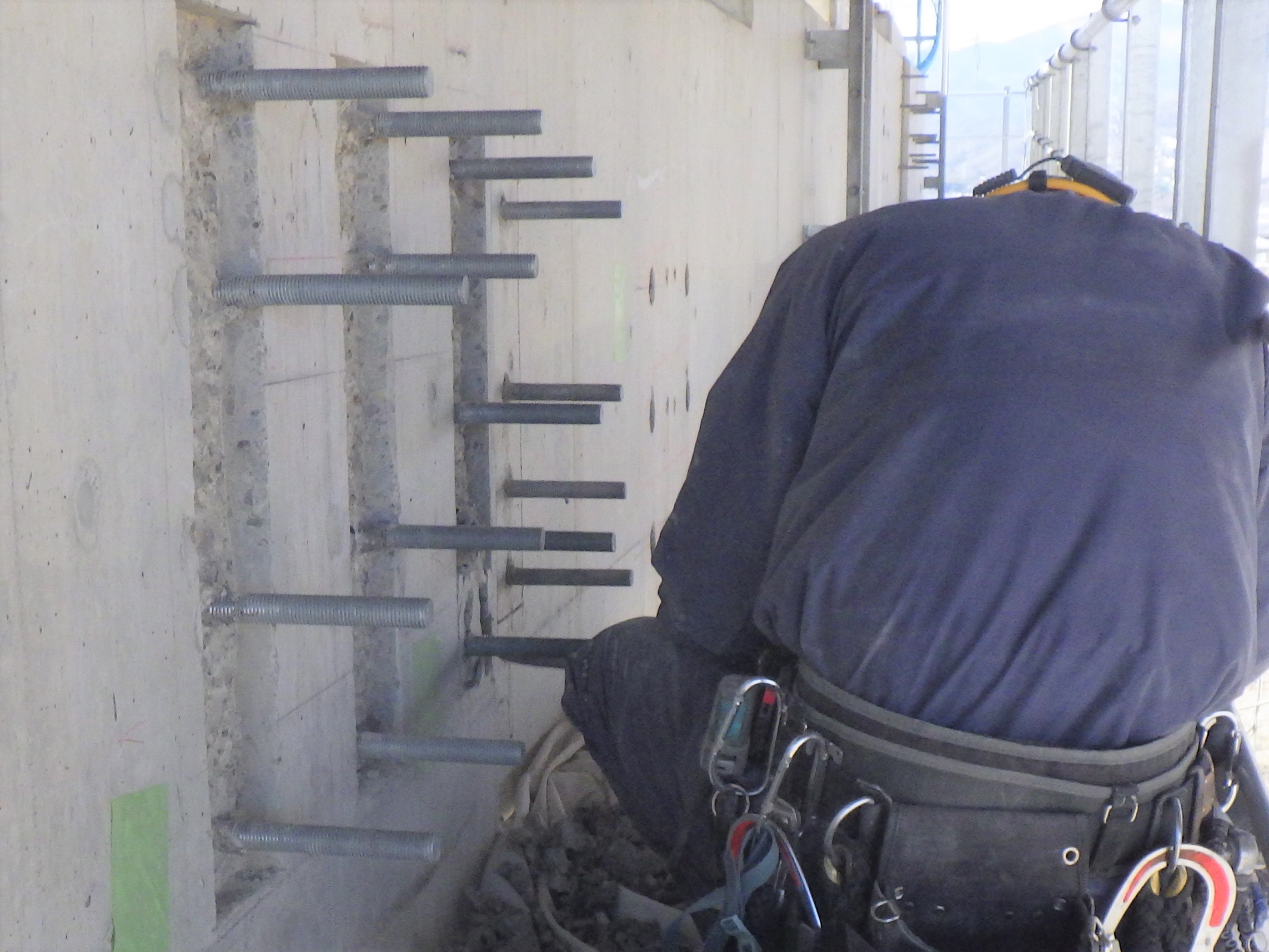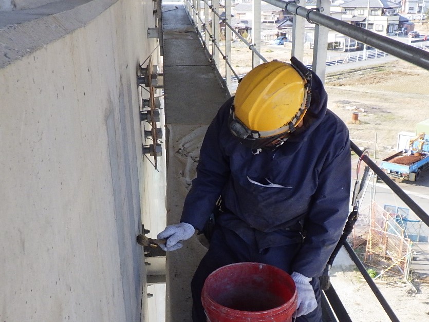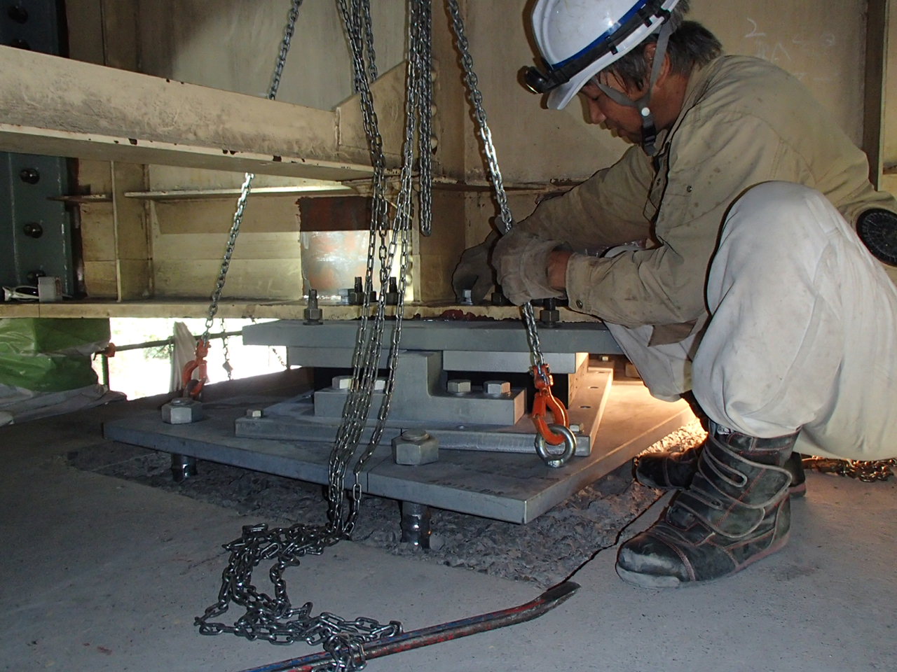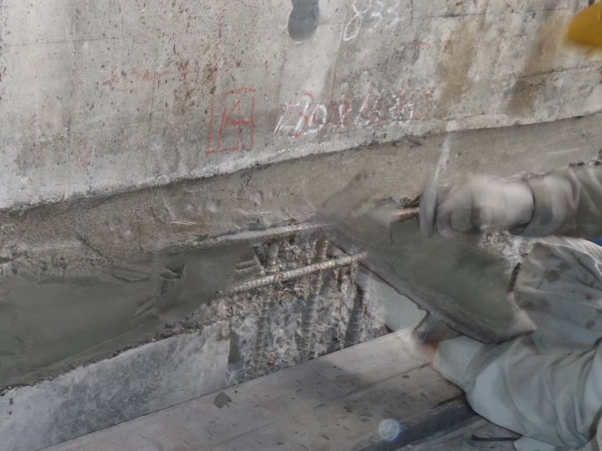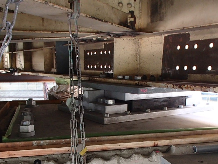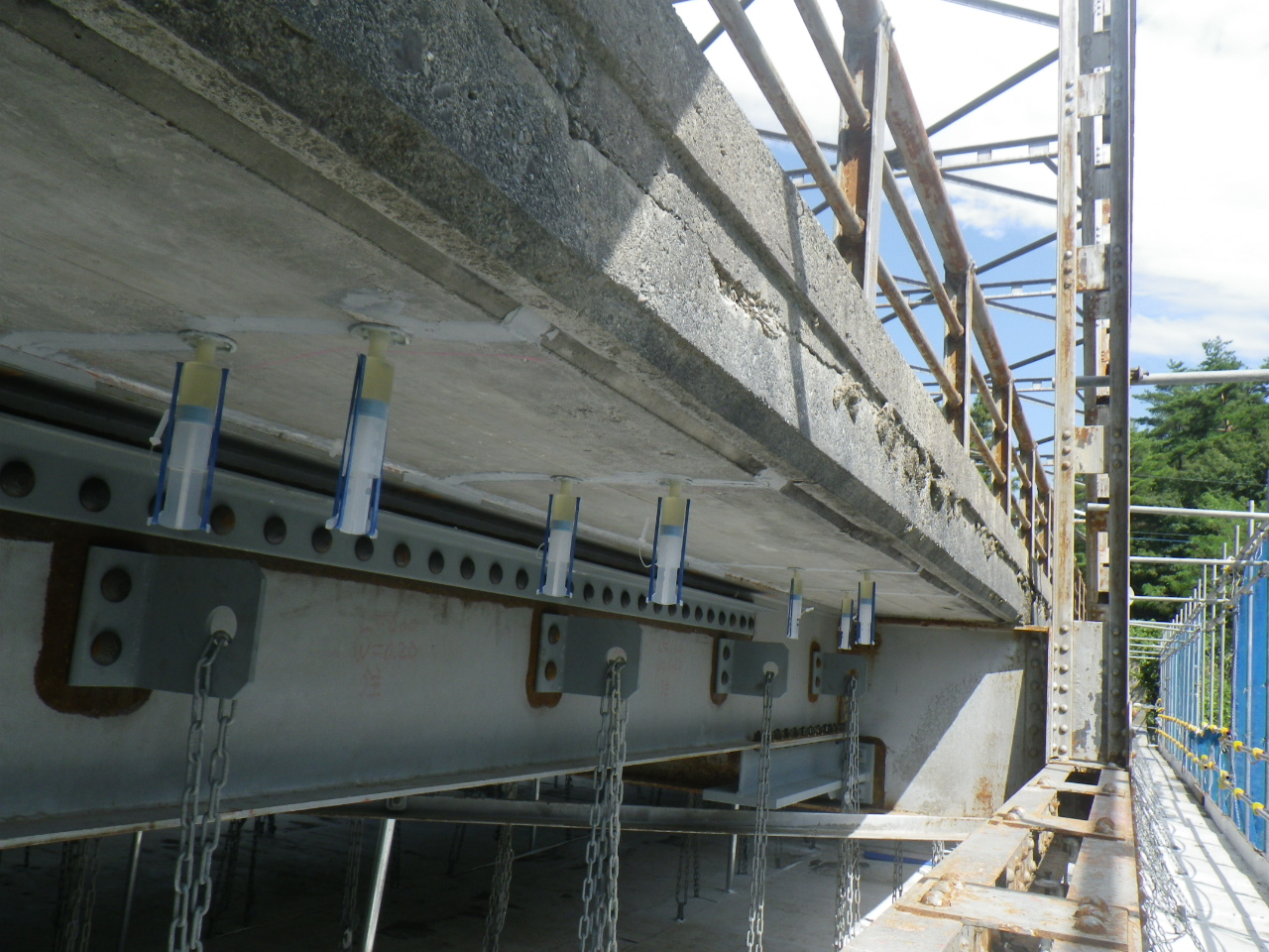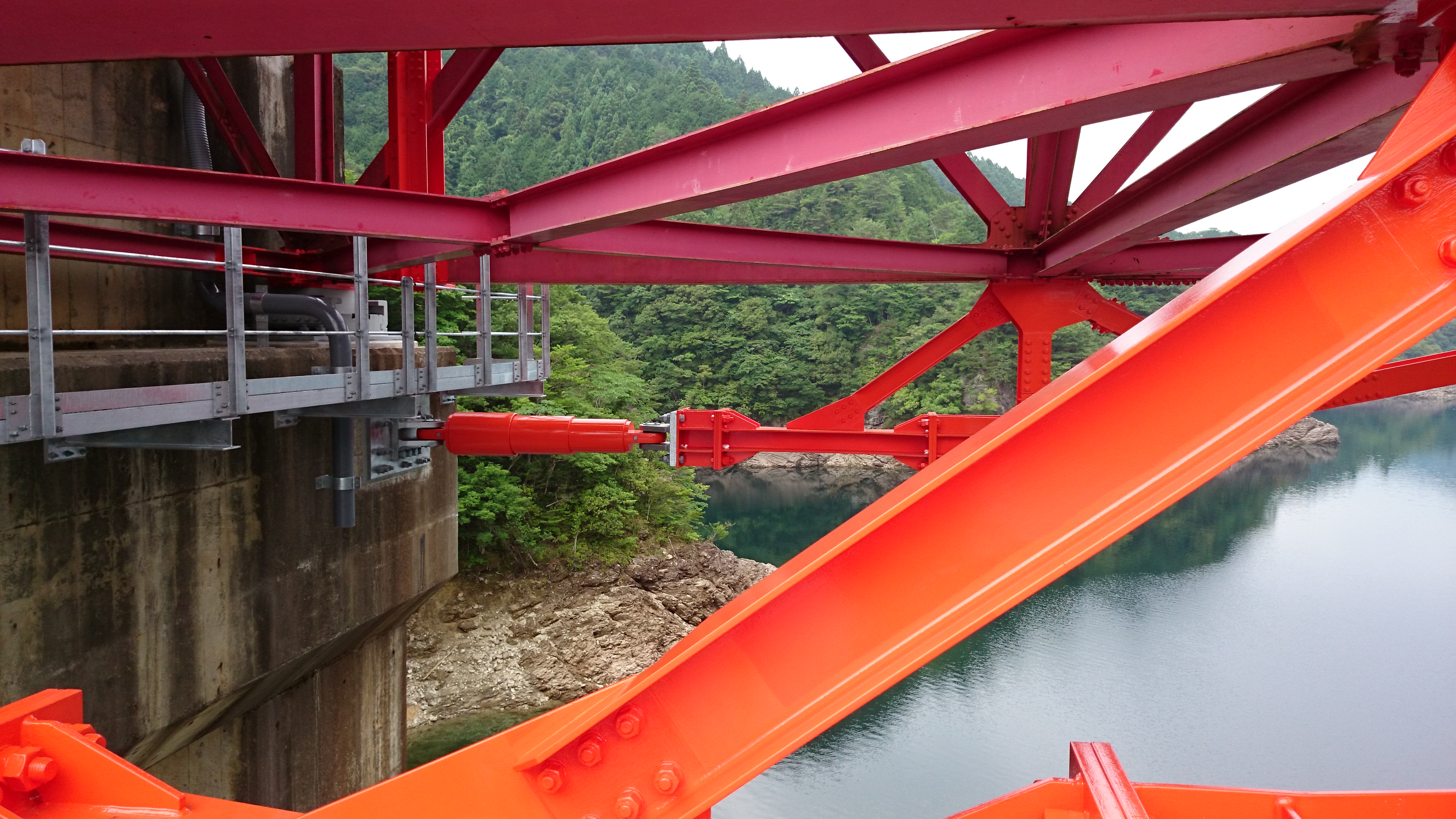 技術内容 橋体補強工 _ 当て板補強 鋼部材が腐食等により減厚したり断面欠損を生じた個所を取り囲むように当て板をあて、補強を行う ▲上部へ戻る 各種繊維シート接着による補強工 炭素繊維・アラミド・剥落防止シートなど各種繊維シートを用いた耐震補強・接触・近接爆発に対する補強・欠落落下防止などを行う ▲上部へ戻る コンクリート構造物補強工 _ ひび割れ注入補修工 コンクリート構造物のひび割れ幅や補修目的に応じ、ひび割れ部に合った材料・工法を選定し注入する。 ▲上部へ戻る 橋体補強工 _ 構造変更による補強工 状況に応じた鋼部材の応力の低減を計る為、補強部材の取付を行う。 ▲上部へ戻る 橋体補強工 _ 鋼鈑接着による補強工 構造物の曲げ・せん断耐力、変形性能を向上させる為、既設構造物に鋼板をあてがい、隙間にモルタル及びエポキシ樹脂を注入する。 ▲上部へ戻る 橋体補強工 _ 支承取替工 経年劣化・機能回復や耐震性能の向上を目的として、既設の支承を取り替える工法 ▲上部へ戻る 橋体補強工 _ 拡幅工 地震の際に橋桁がずれたり、落下しないように各装置を設置。震災時、桁が橋脚や橋台上で進行方向に移動し落下することを防ぐため、桁掛かり 部分を進行方向に増し打ちし拡幅する。 ▲上部へ戻る コンクリート構造物補強工 _ コンクリート脆弱部断面修復工 コンクリート構造物の劣化状況を調査し、劣化部分を斫り撤去し劣化状況に応じた断面修復材にて断面修復を復元する。 ▲上部へ戻る 断面修復工 ▲上部へ戻る 橋体補強工 _ リベット取替工 ▲上部へ戻る 補強用ケーブル設置工 ▲上部へ戻る