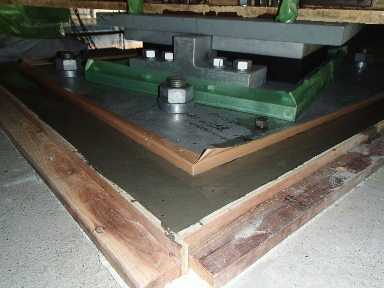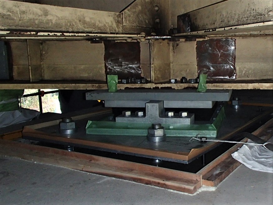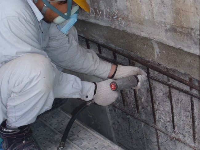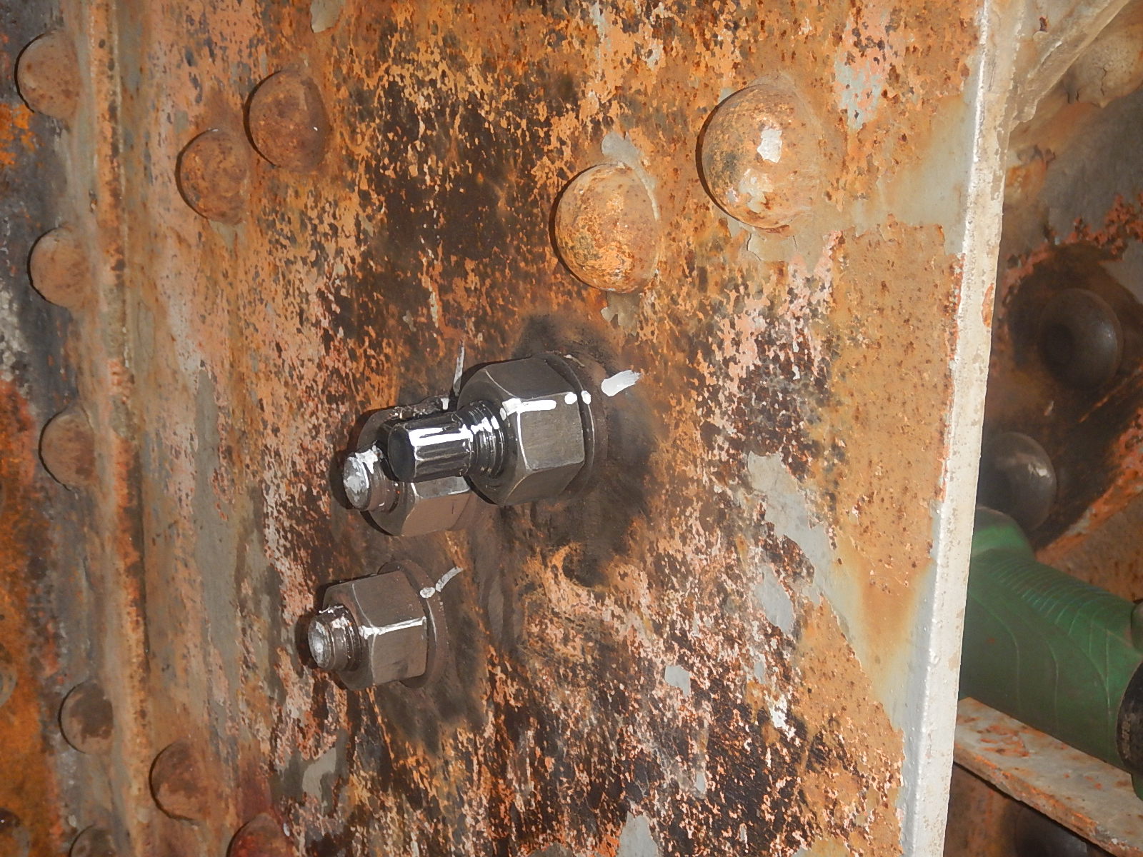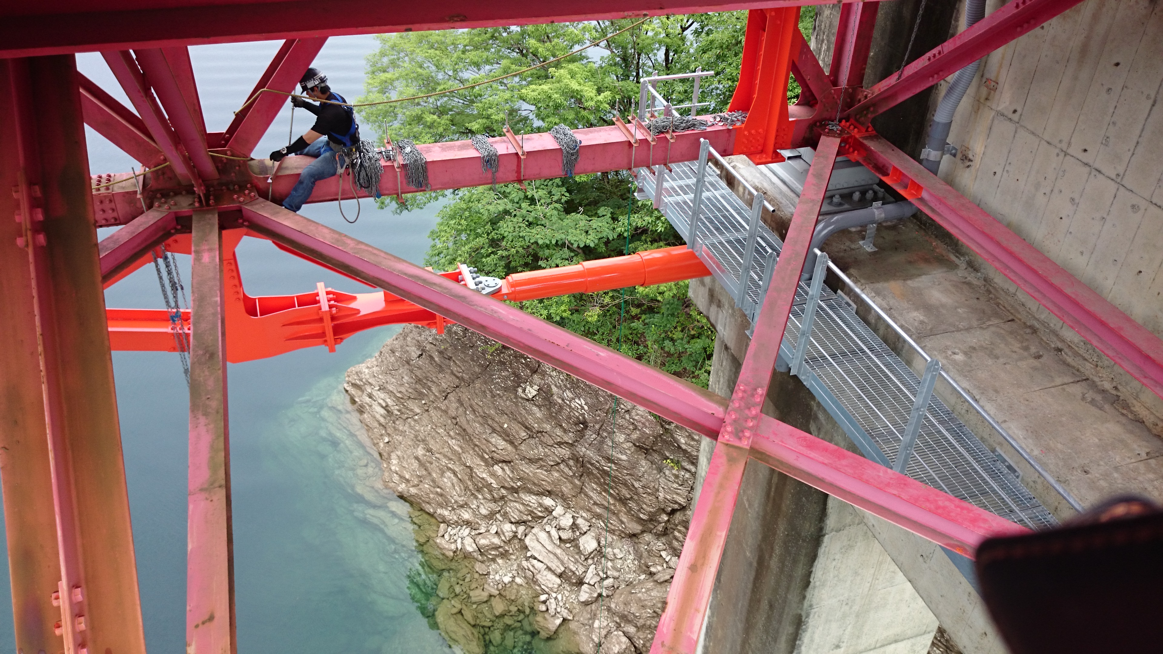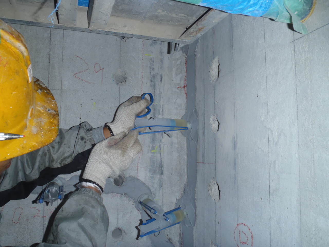 技術内容 橋体補強工 _ 当て板補強 鋼部材が腐食等により減厚したり断面欠損を生じた個所を取り囲むように当て板をあて、補強を行う ▲上部へ戻る 各種繊維シート接着による補強工 炭素繊維・アラミド・剥落防止シートなど各種繊維シートを用いた耐震補強・接触・近接爆発に対する補強・欠落落下防止などを行う ▲上部へ戻る コンクリート構造物補強工 _ ひび割れ注入補修工 コンクリート構造物のひび割れ幅や補修目的に応じ、ひび割れ部に合った材料・工法を選定し注入する。 ▲上部へ戻る 橋体補強工 _ 構造変更による補強工 状況に応じた鋼部材の応力の低減を計る為、補強部材の取付を行う。 ▲上部へ戻る 橋体補強工 _ 鋼鈑接着による補強工 構造物の曲げ・せん断耐力、変形性能を向上させる為、既設構造物に鋼板をあてがい、隙間にモルタル及びエポキシ樹脂を注入する。 ▲上部へ戻る 橋体補強工 _ 支承取替工 経年劣化・機能回復や耐震性能の向上を目的として、既設の支承を取り替える工法 ▲上部へ戻る 橋体補強工 _ 拡幅工 地震の際に橋桁がずれたり、落下しないように各装置を設置。震災時、桁が橋脚や橋台上で進行方向に移動し落下することを防ぐため、桁掛かり 部分を進行方向に増し打ちし拡幅する。 ▲上部へ戻る コンクリート構造物補強工 _ コンクリート脆弱部断面修復工 コンクリート構造物の劣化状況を調査し、劣化部分を斫り撤去し劣化状況に応じた断面修復材にて断面修復を復元する。 ▲上部へ戻る 断面修復工 ▲上部へ戻る 橋体補強工 _ リベット取替工 ▲上部へ戻る 補強用ケーブル設置工 ▲上部へ戻る